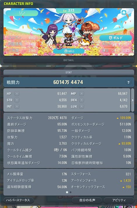 レベルは272に、戦闘力はファミ有で6,000万を超えました!